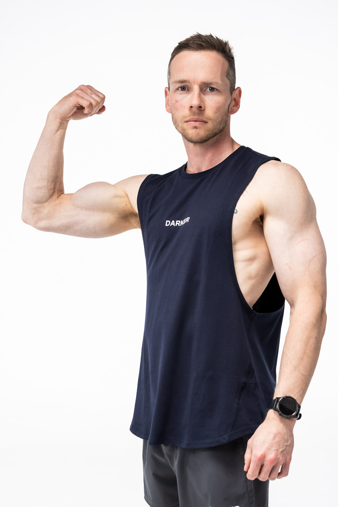 Designed for athletes who give it their all, the Darker Apparel Men’s Training Tank is the perfect blend of function and style. Crafted from a premium cotton-polyester blend, this tank is ultra-lightweight, breathable, and moisture-wicking—keeping you cool and dry through even the most intense sessions. The streamlined fit is designed to showcase your hard-earned progress while allowing full range of motion for every lift, sprint, or stretch.